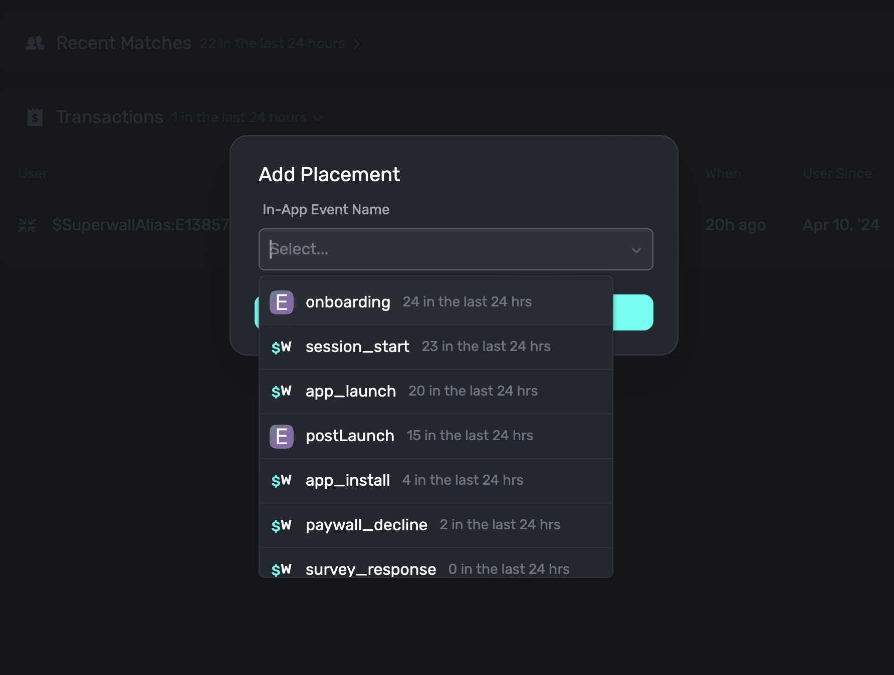 1. Standard placements: These are placements you can use which Superwall already tracks and manages for you. Things like app installs, session start, failed transactions and more. We go into more detail about them here.