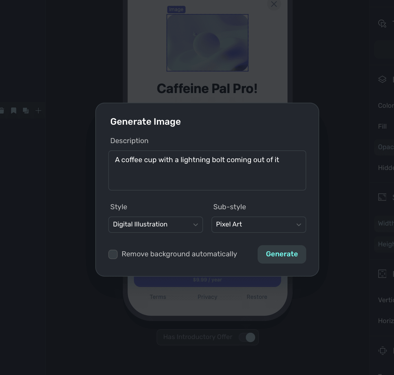 - Remove background automatically: Select this to have the image generator attempt to remove the background from the resulting image.