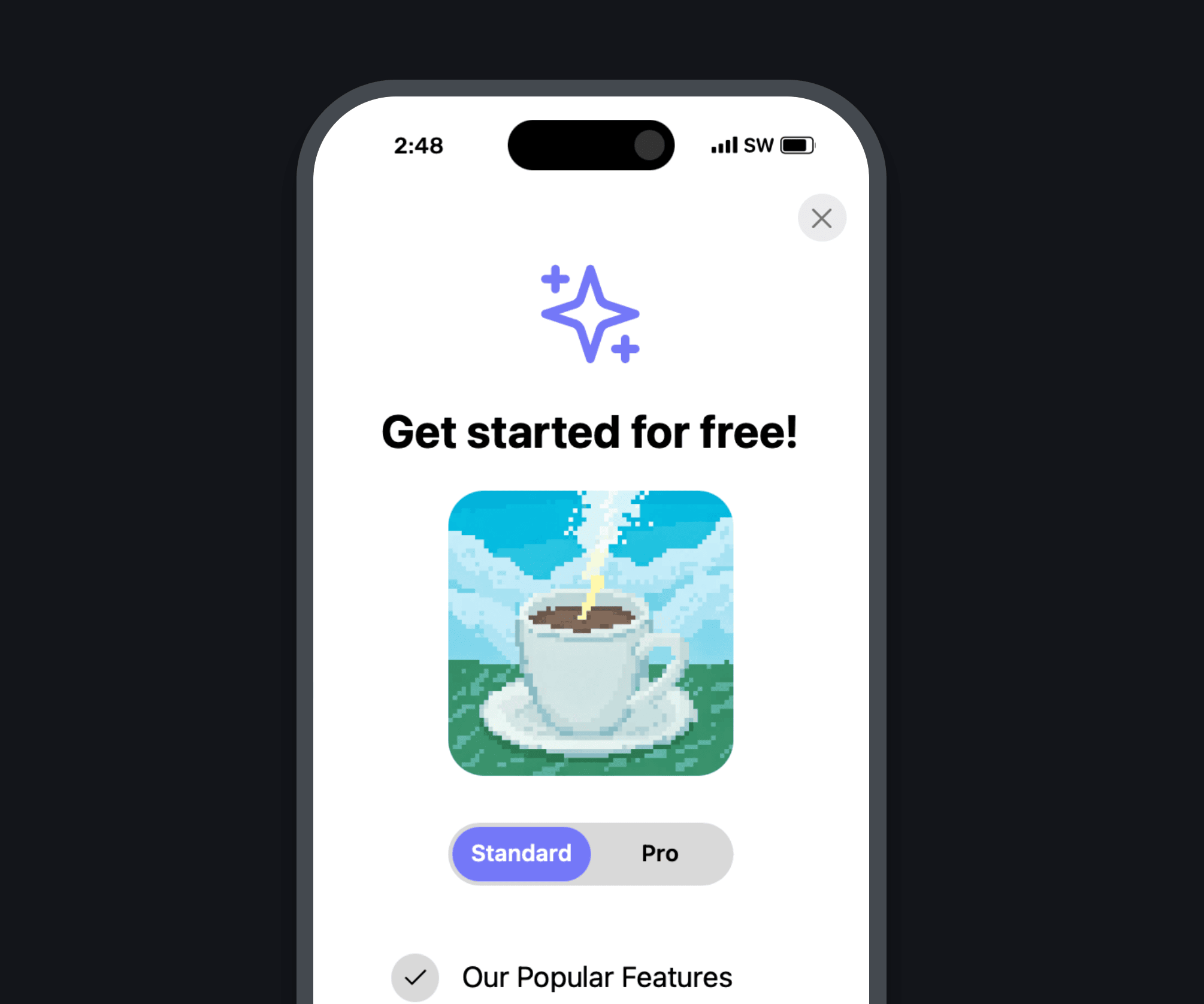 - Custom Action: Performs a custom action that you specify. Using custom actions, you can tie application logic to anything tapped or clicked on your paywall. Check out the docs here.