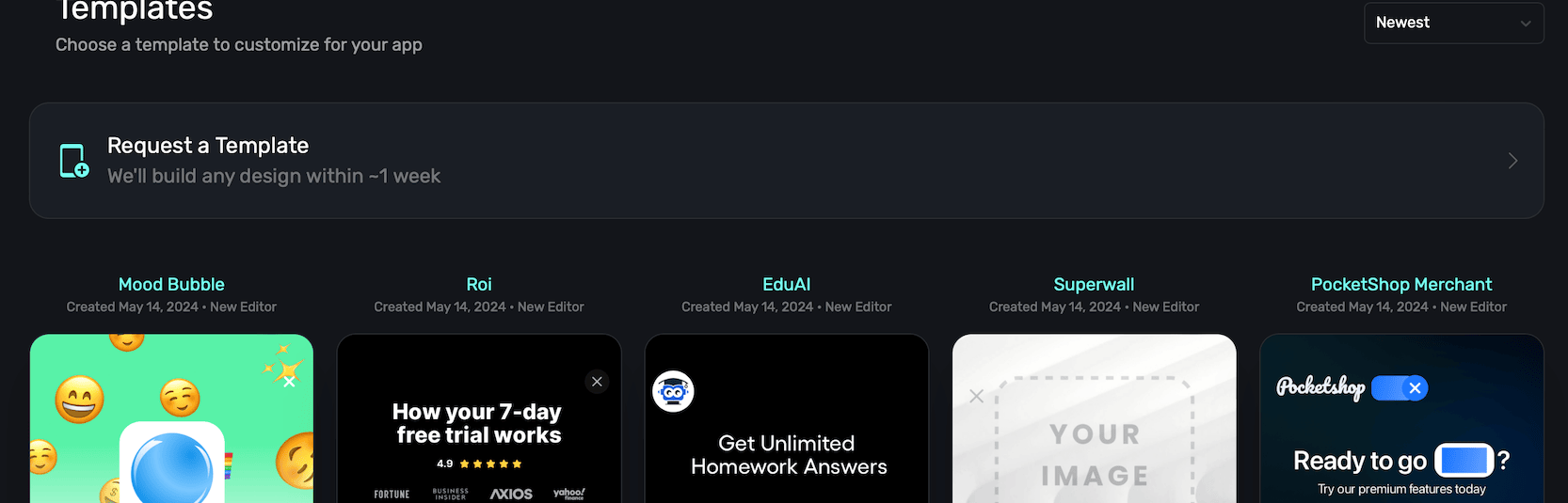 Superwall frequently updates existing templates, as well as adding new ones. Check back often!