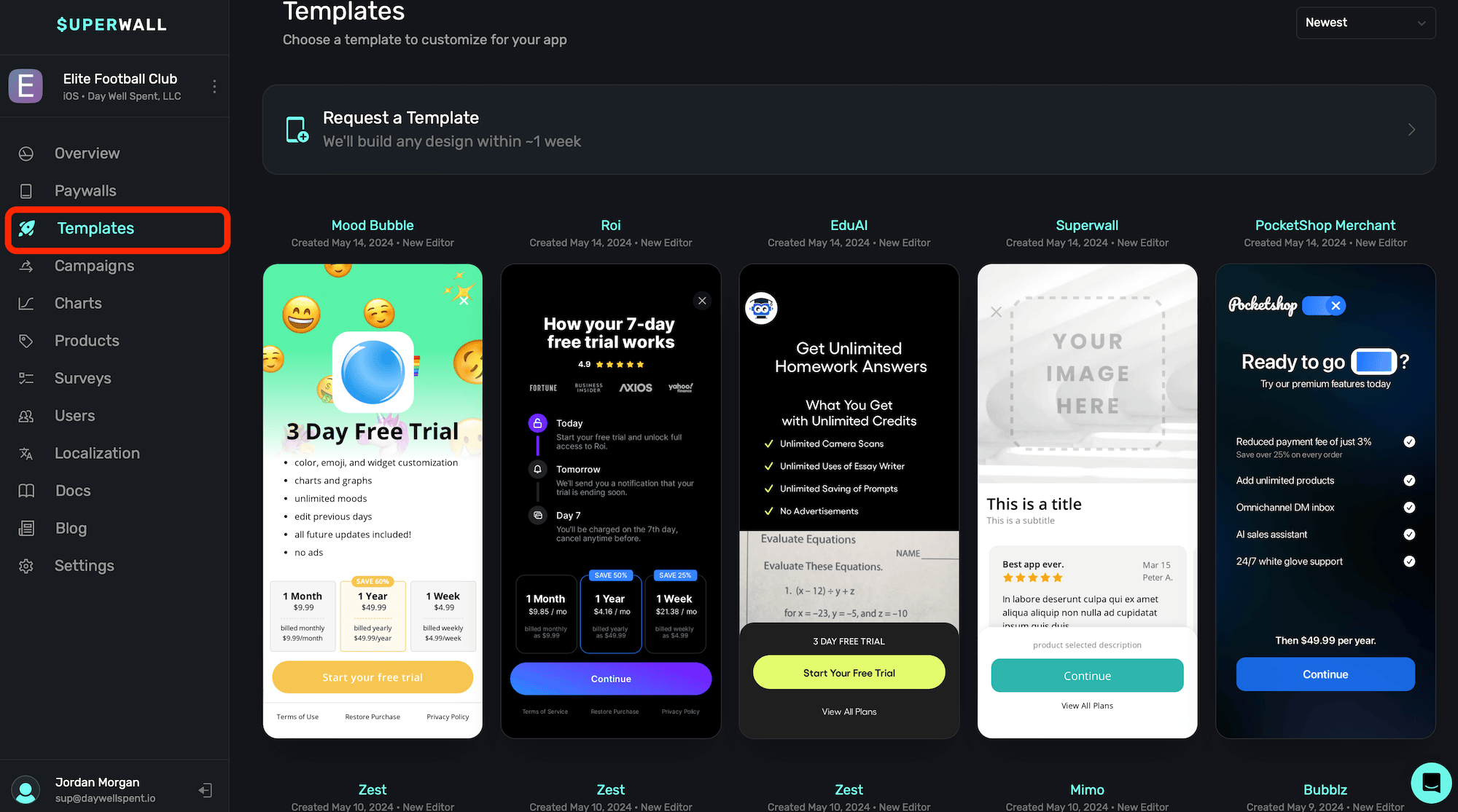 Click Templates from the sidebar to start your paywall design process with one of our templates: