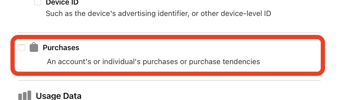 Privacy disclosures in regards to how data is processed or otherwise used are required when submitting an app for review on the App Store. When using the Superwall SDK, there are a few options you'll need to select to comply with this requirement.