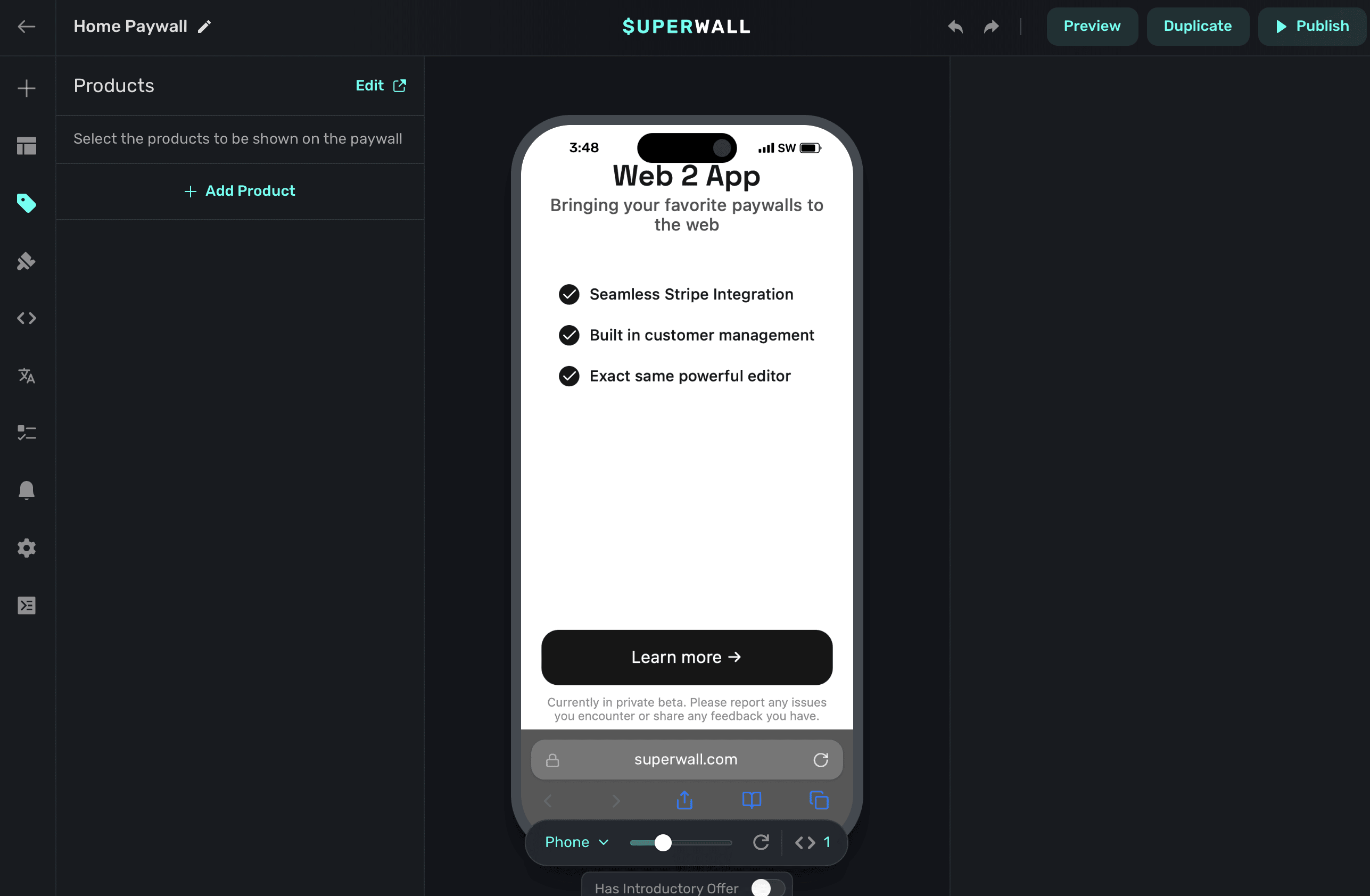 Adding Stripe products to web paywalls works the exact same way as it does for mobile paywalls. Check out the docs here. For a quick overview: