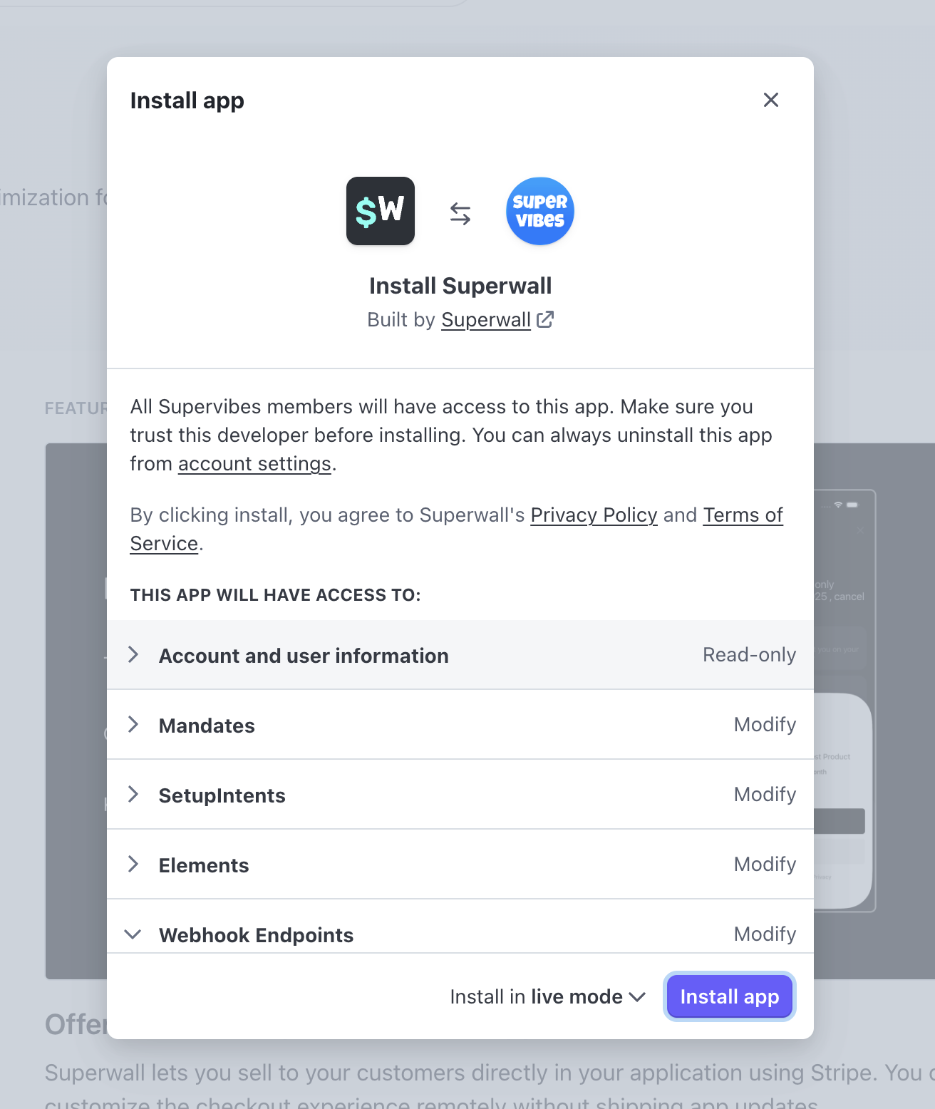 Visit the Superwall app on Stripe Marketplace: