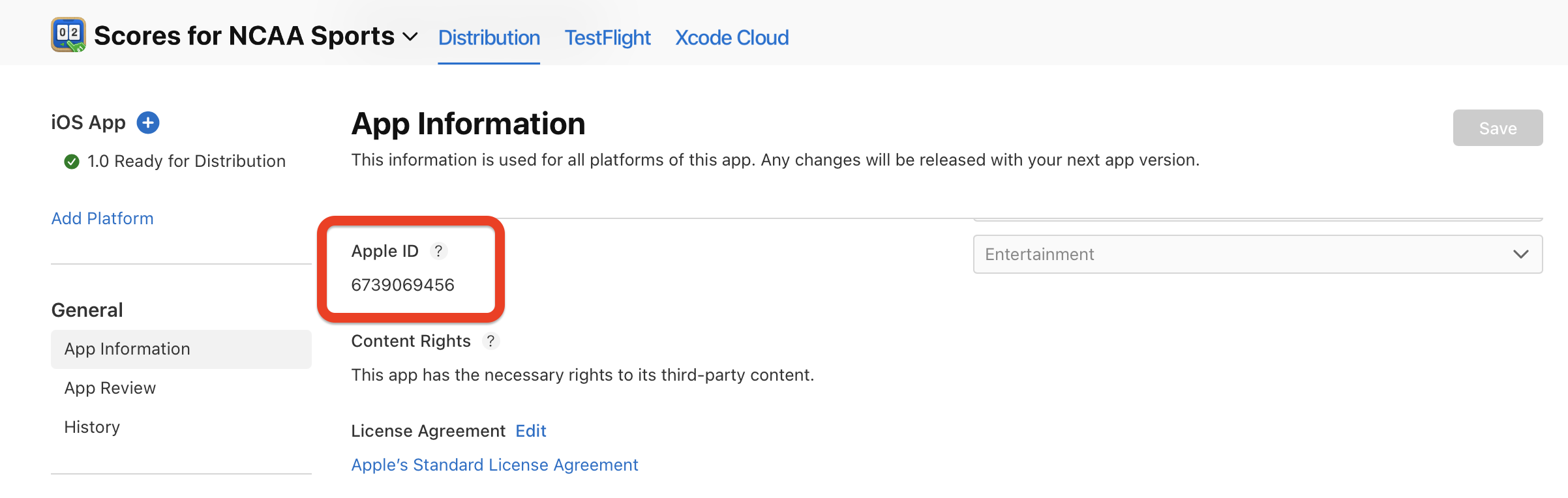 - Apple App ID: Your iOS app's ID. If you're unsure of your app's ID, you find it in App Store Connect -> Select your App -> General -> App Information -> Apple ID: