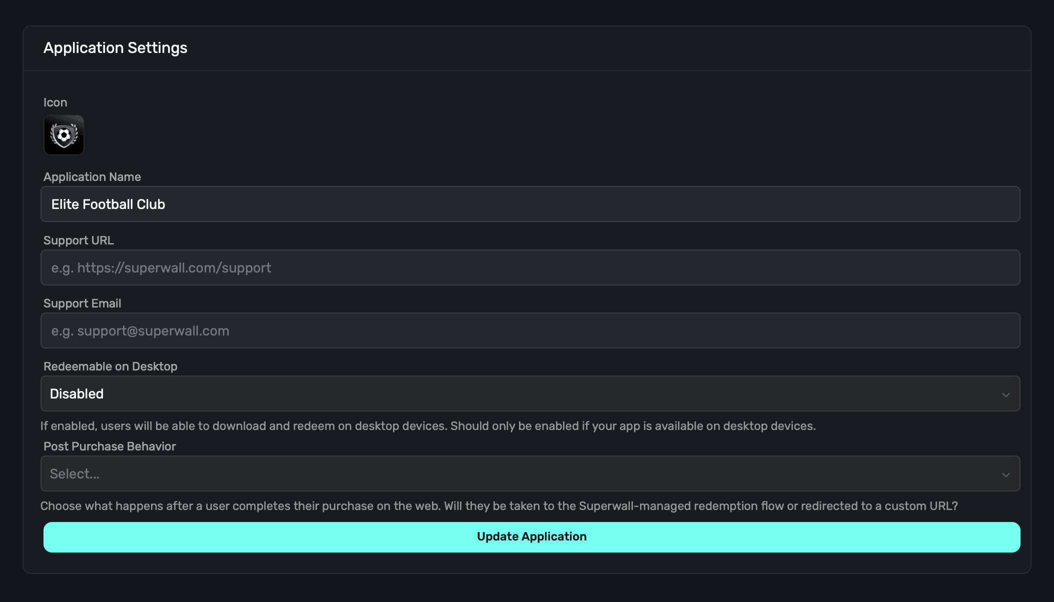 Once you've filled out this information, click on the Update Application button.