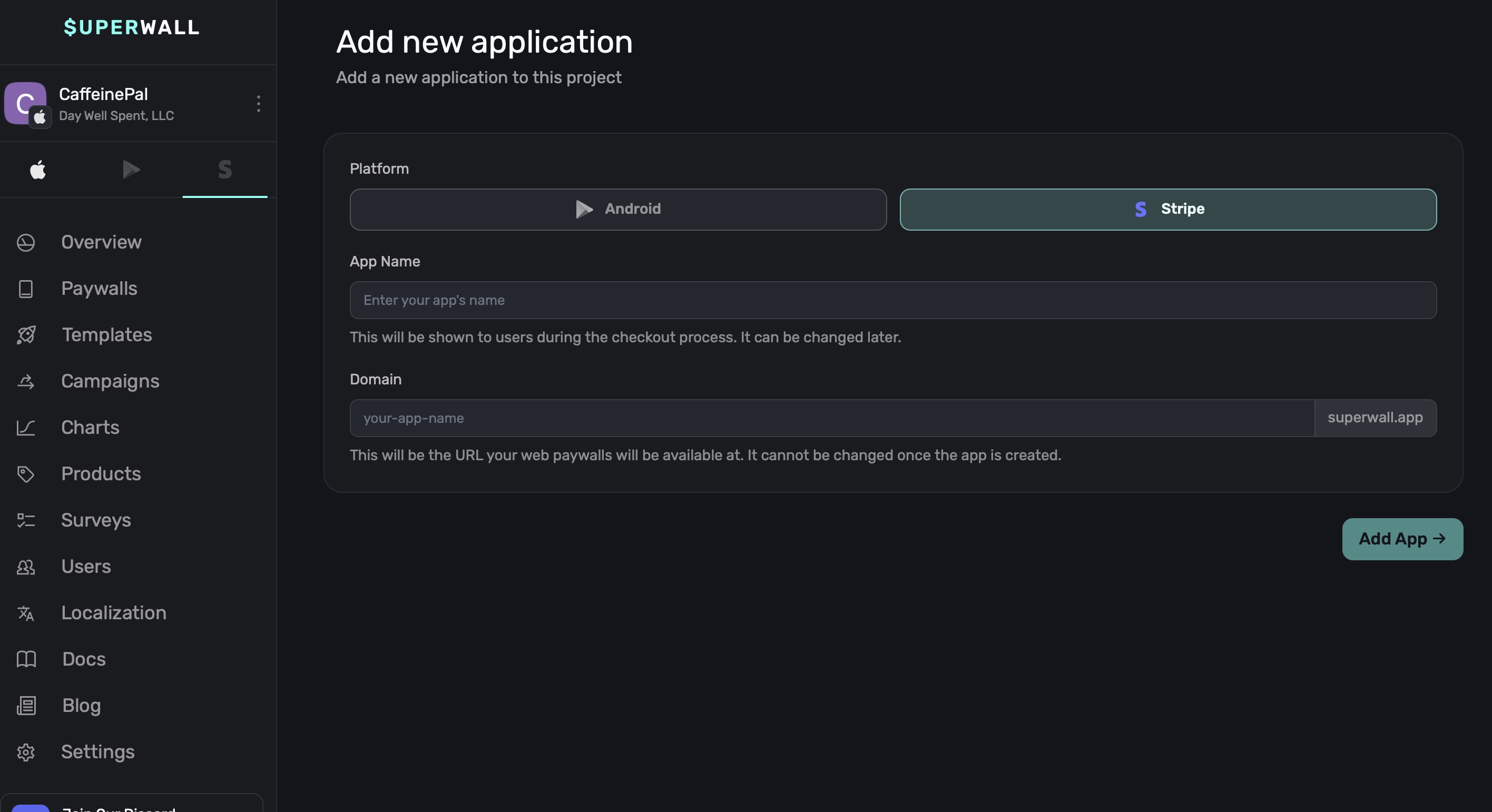 superwall.appwill be appended to it. You cannot edit this once your app is created.